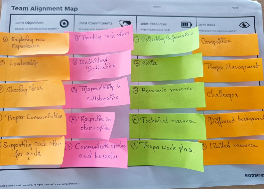 The 2nd task was “writing a team alignment together in the sheet. Each team members objectives, comminent, contribution, and risk. later on, the task continues from the problems we wrote, we have to select the any one specific problem and go through the research, it may be primary or secondary sources on the research. All the team members went to research.
